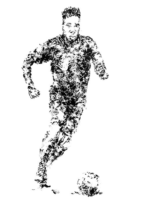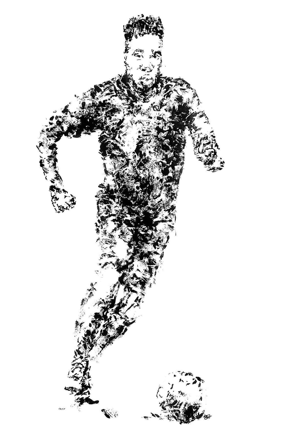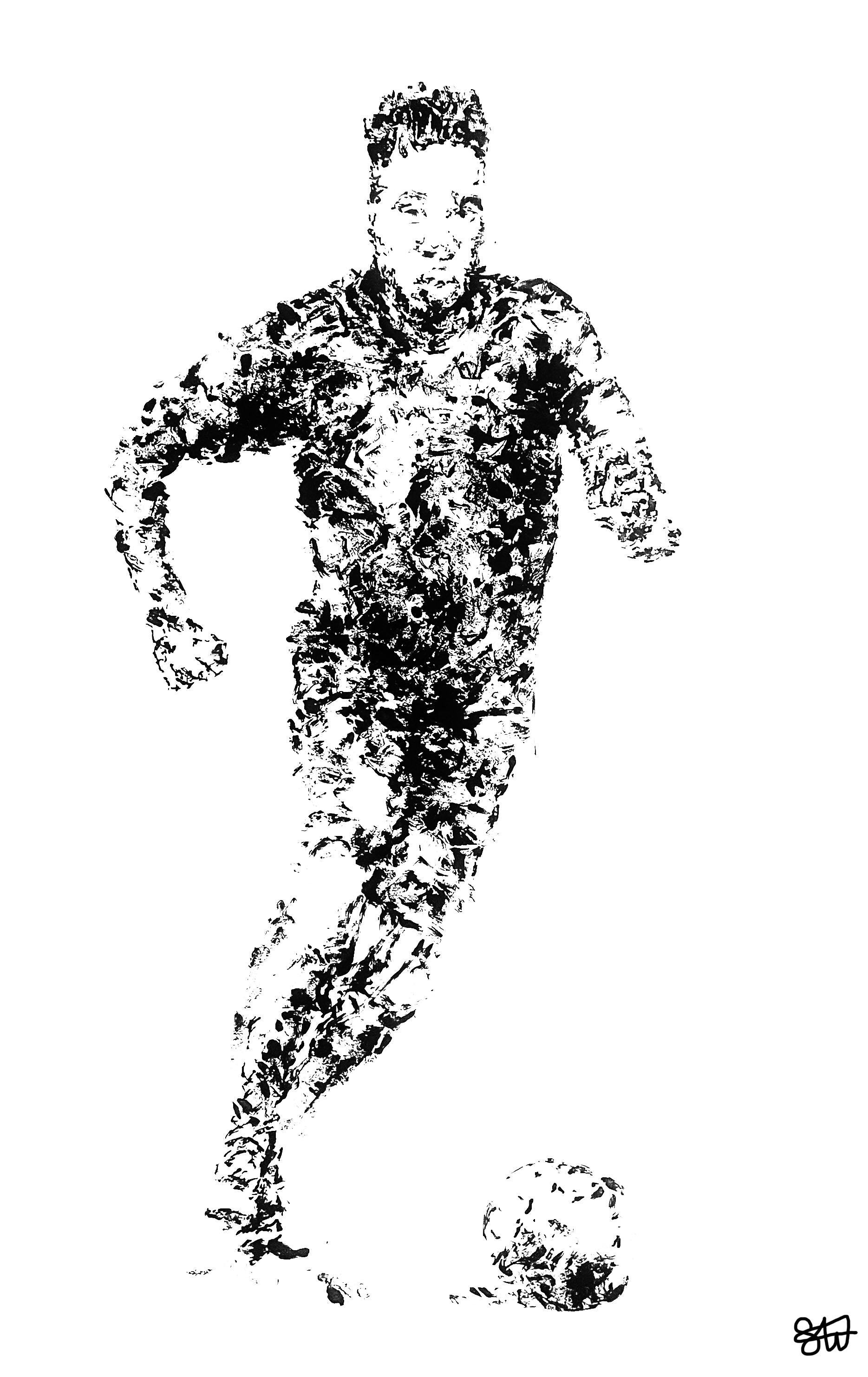 Print of Alphonso Davies painting made with a soccer ball as a paintbrush.