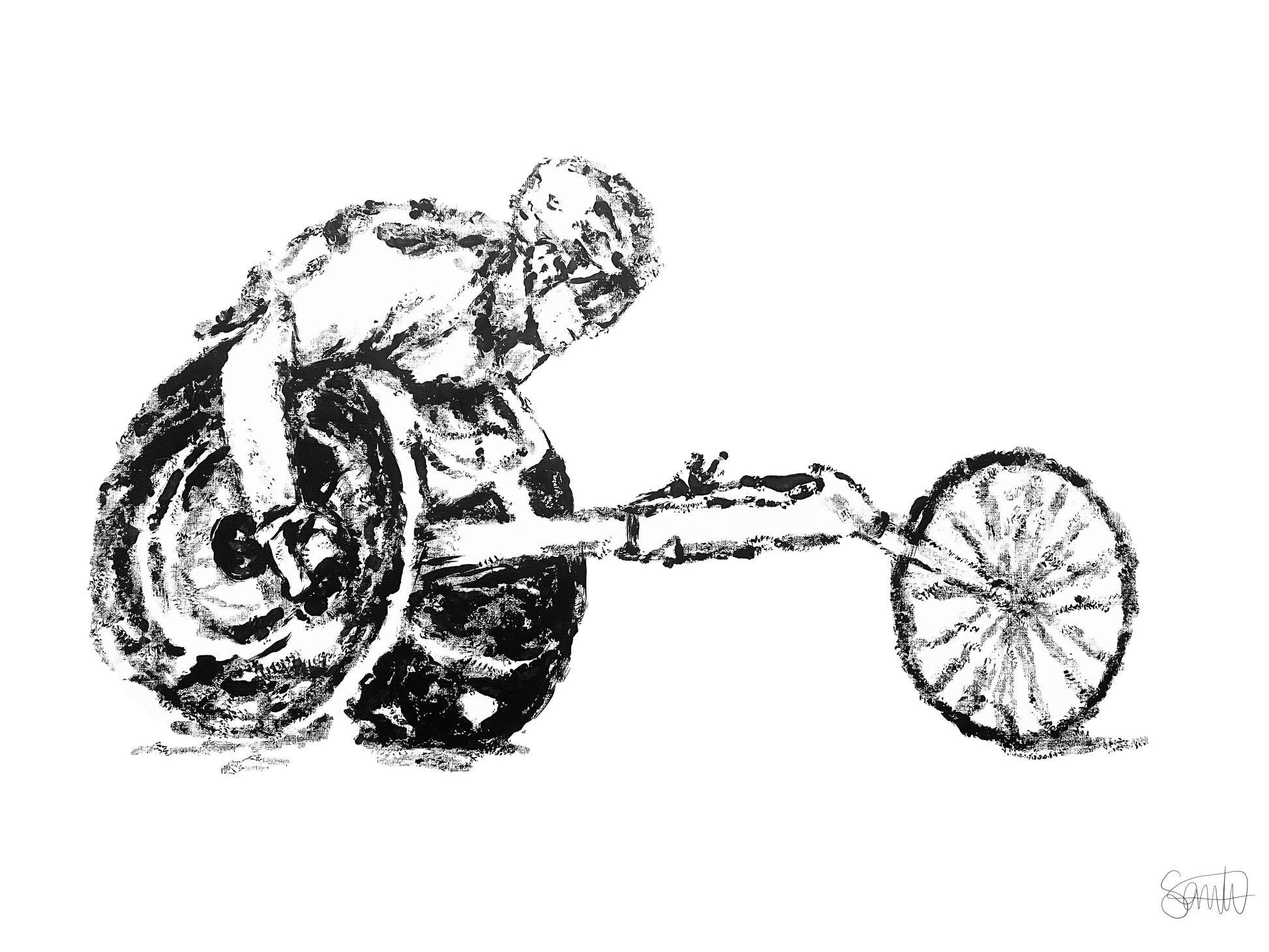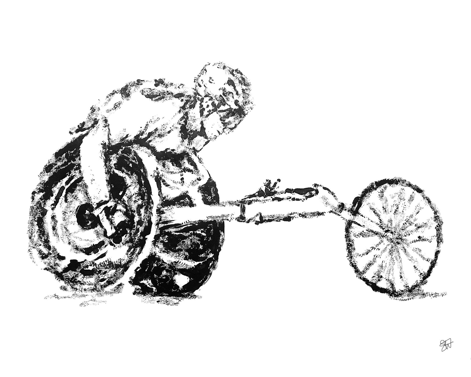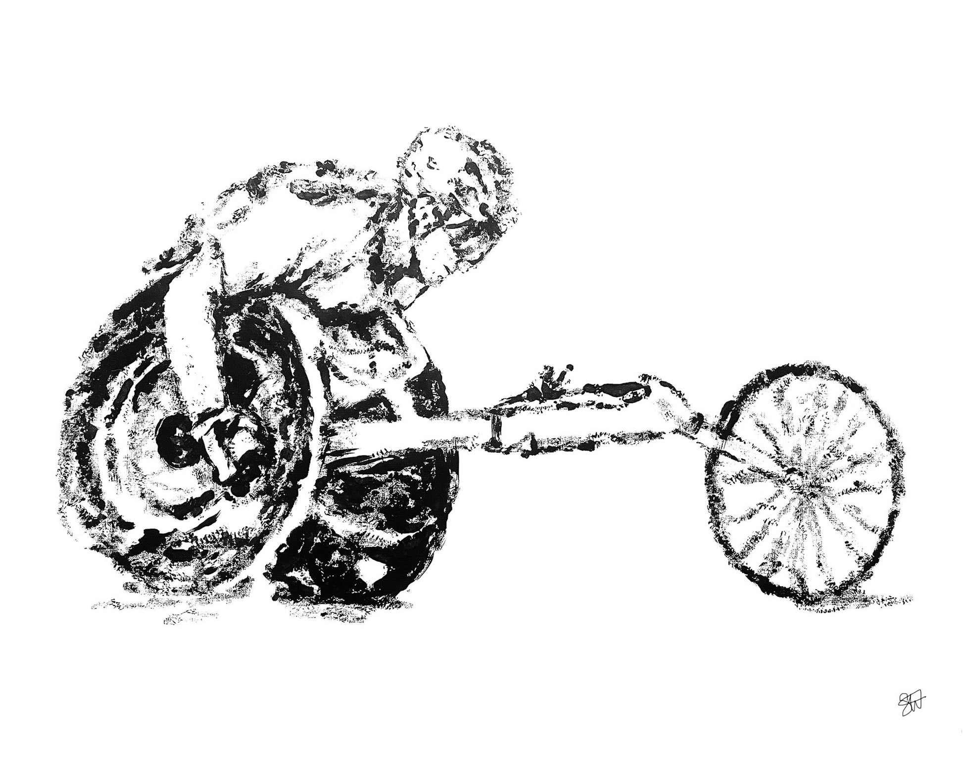 Print of a painting made using a baseball as a paintbrush.