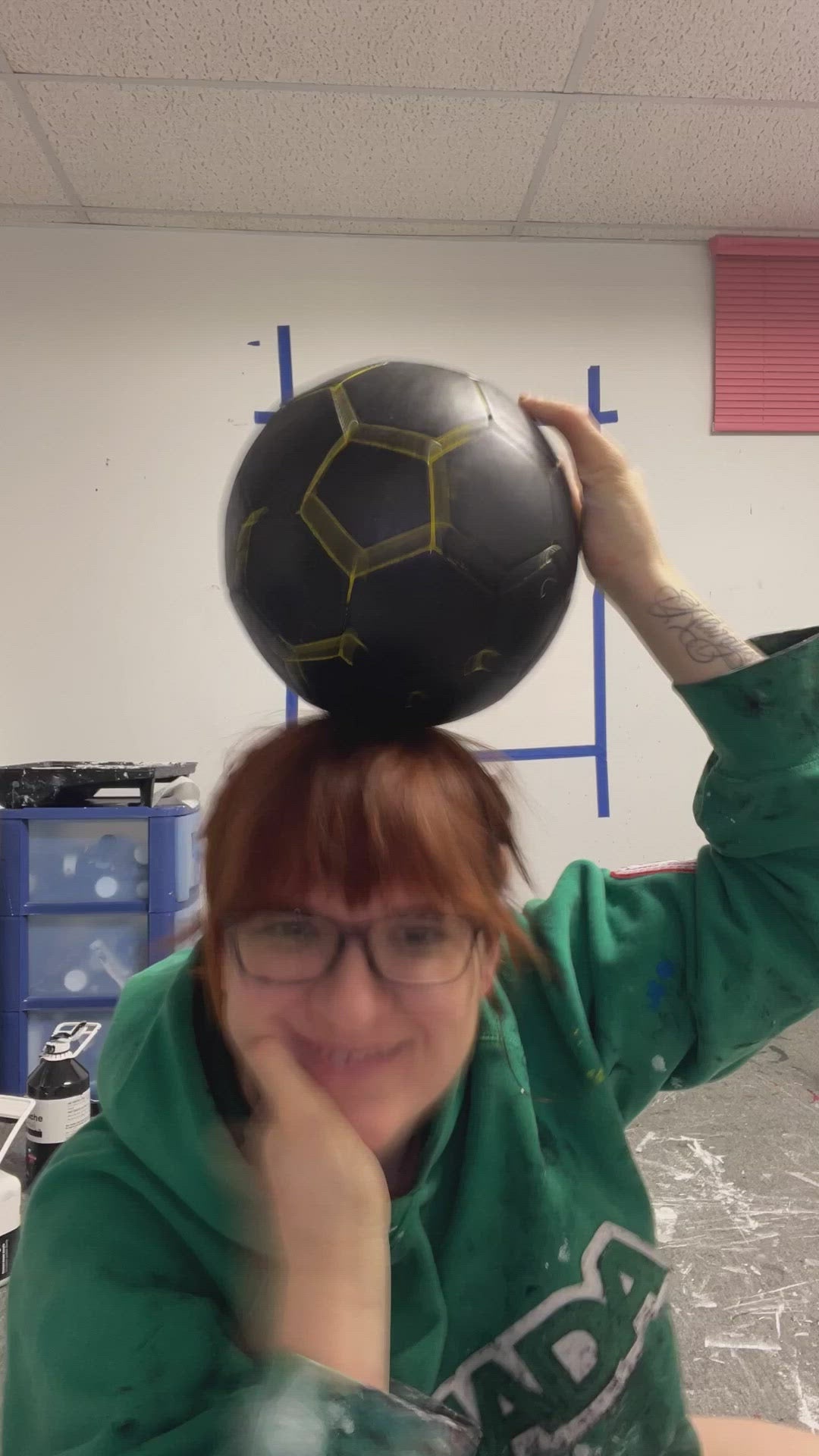 - 38" x 36", acrylic paint on Canson Canva paper, 2021. Painting made with a soccer ball as a paintbrush. A paintbrush was used to further defined the marks made with a soccer ball.
