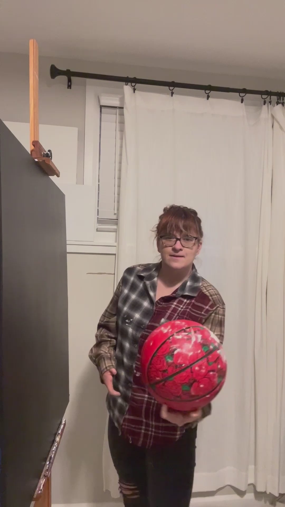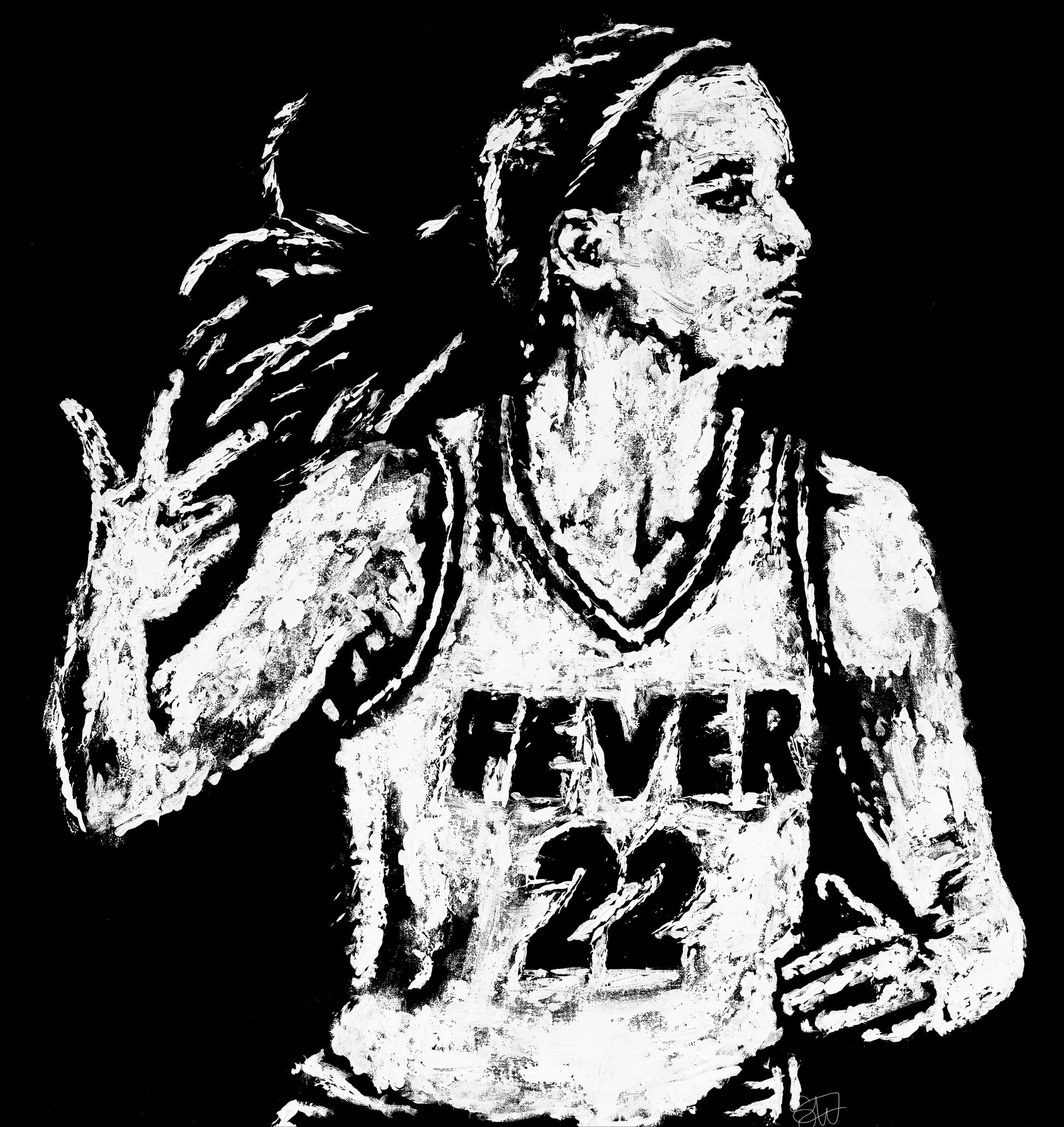 - 36" x 36". Painting made on canvas with a basketball as a paintbrush, 2024. A paintbrush was used to further the marks made by the basketball. This painting was made in collaboration with Round 21 and WNBPA.