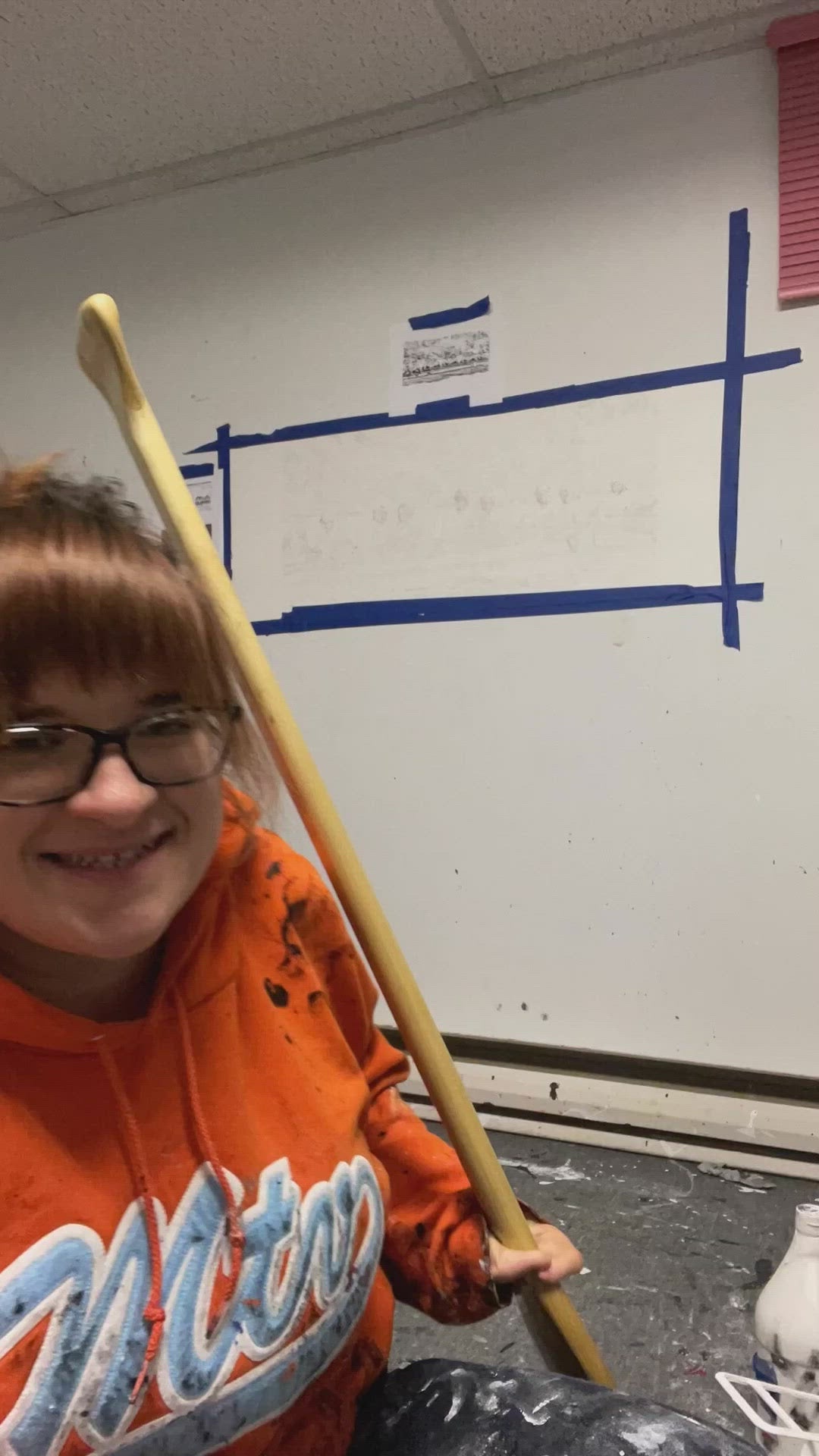 Print of painting made with an oar as a paintbrush.