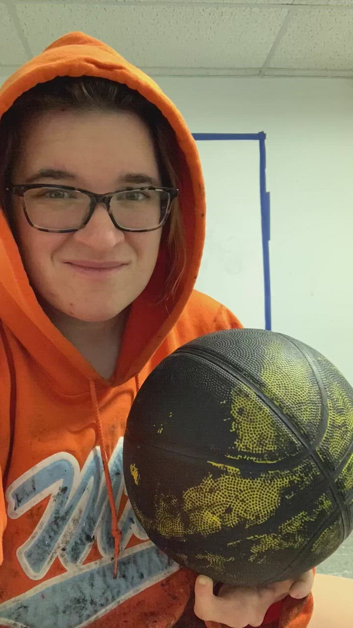 Impression de la peinture de Fred Vanvleet réalisée avec un ballon de basket en guise de pinceau.