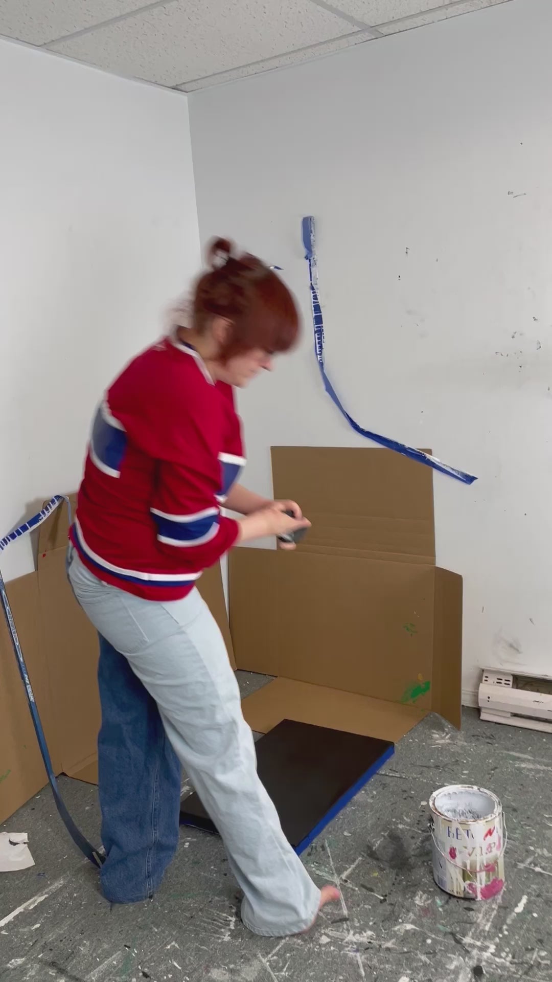 Peinture murale sur toile de 16" x 24" x 1,5". Cette peinture a été réalisée en utilisant une bâton de hockey et une rondelle de hockey comme pinceau.
