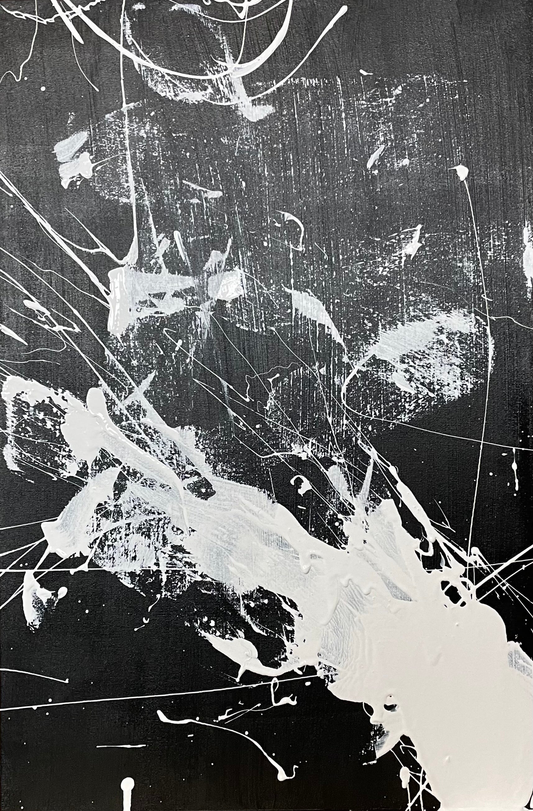 16" x 24"x 1.5" wall paint on canvas. This painting was made using a hockey stick and hockey puck as a paintbrush.