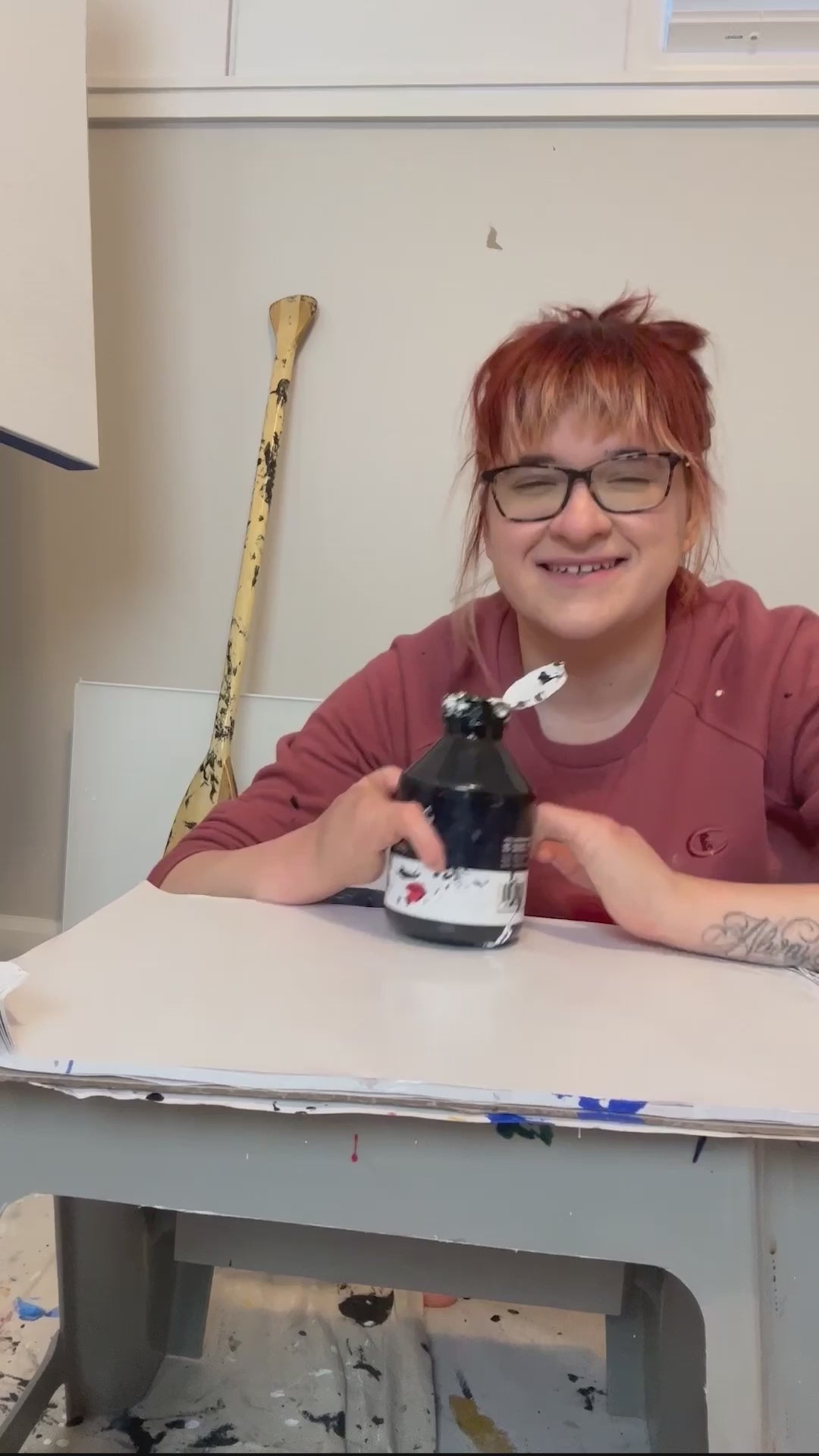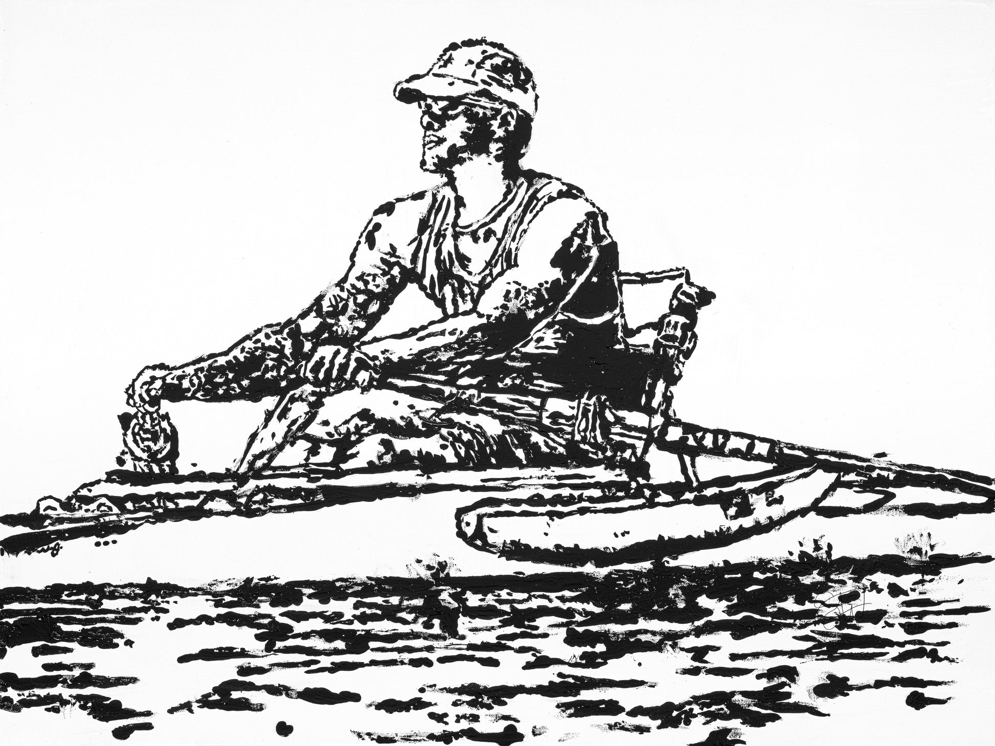 - 30" x 40". Painting made on canvas with a paddle as a paintbrush, 2024. A paintbrush was used to further the marks made by the paddle.