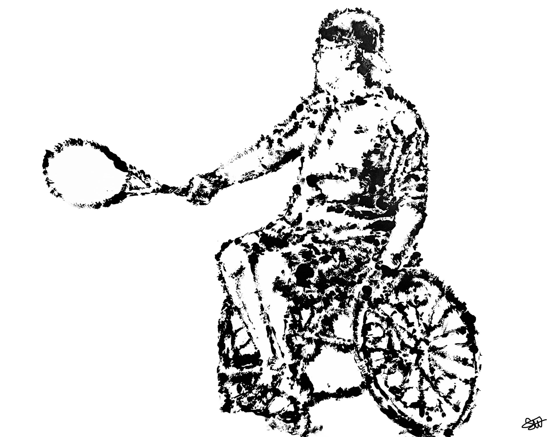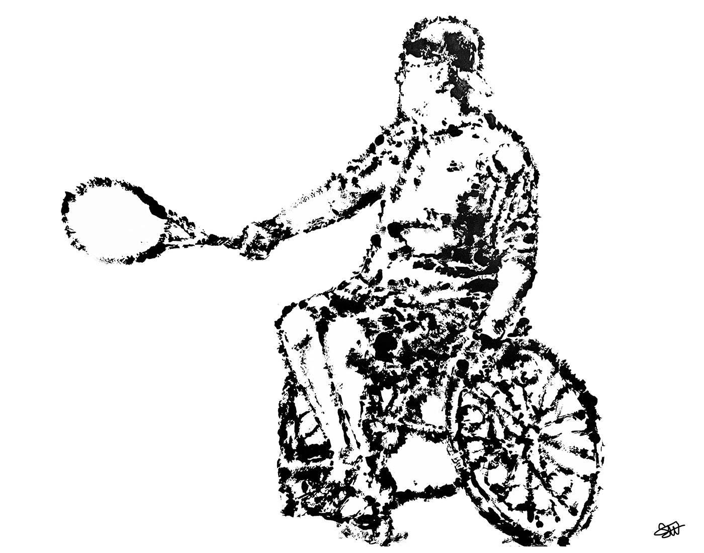 print of painting made with a tennis ball as a paintbrush.