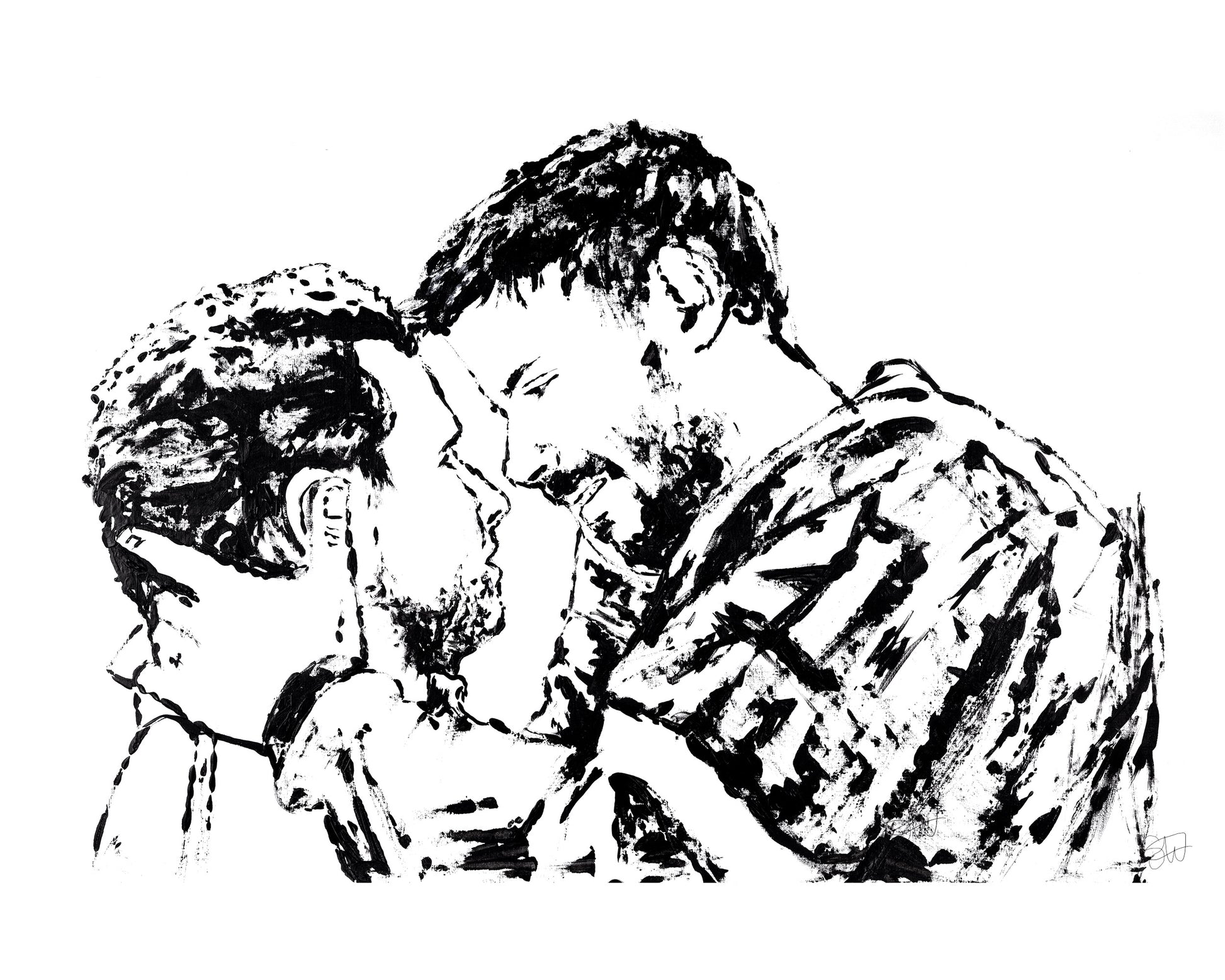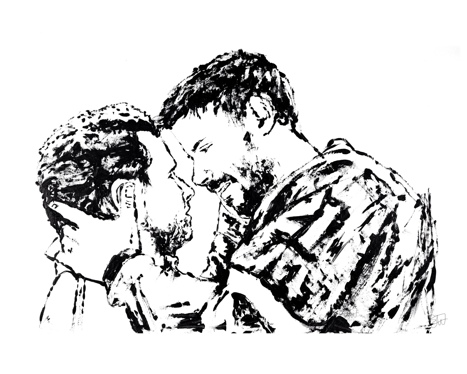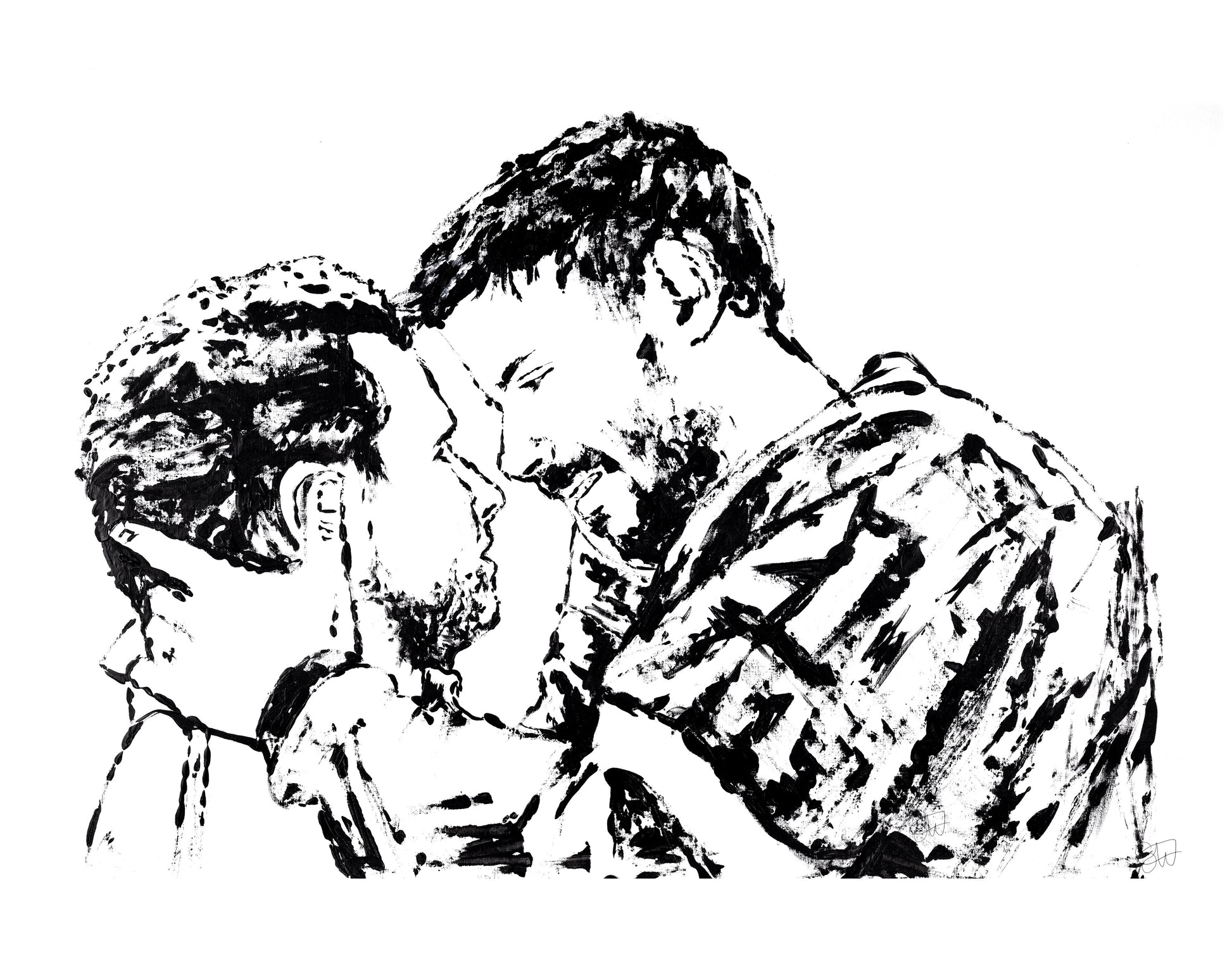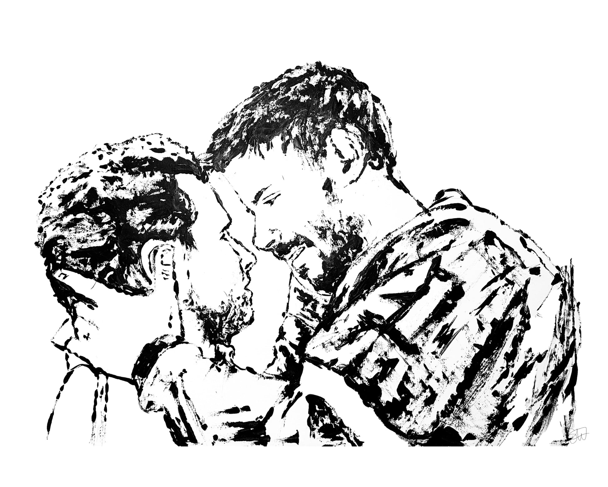Fine Art Digital Pigment Print of painting François Arnaud as Scott and Robbie G.K as Skip with hockey equipmet as a paintbrush.