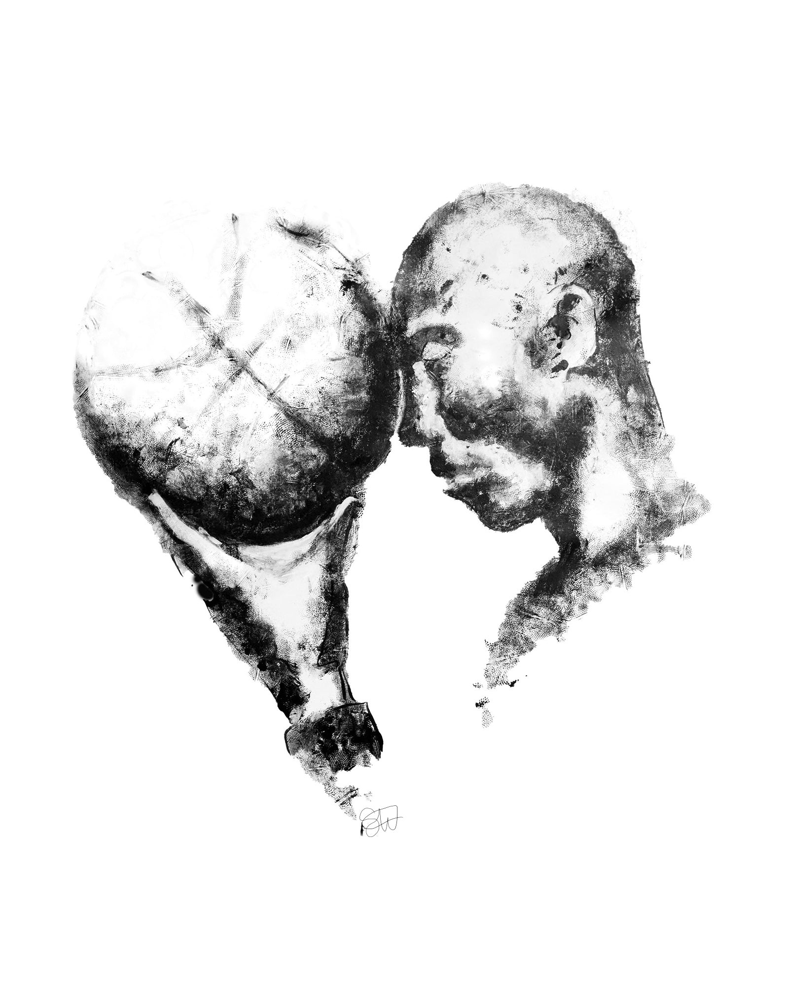 Print of a painting made with a basketball as a paintbrush.