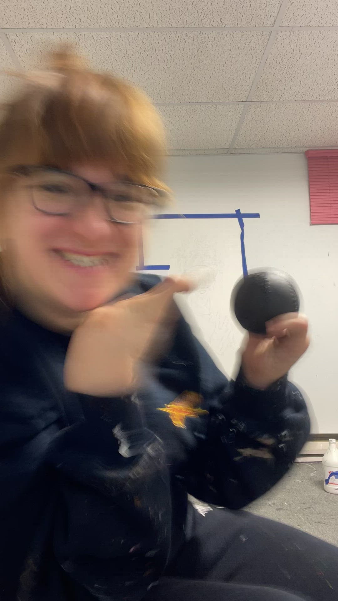 Print of Lourdes Gurriel Jr painting made with a baseball as a paintbrush. A paintbrush was used to further define the marks.