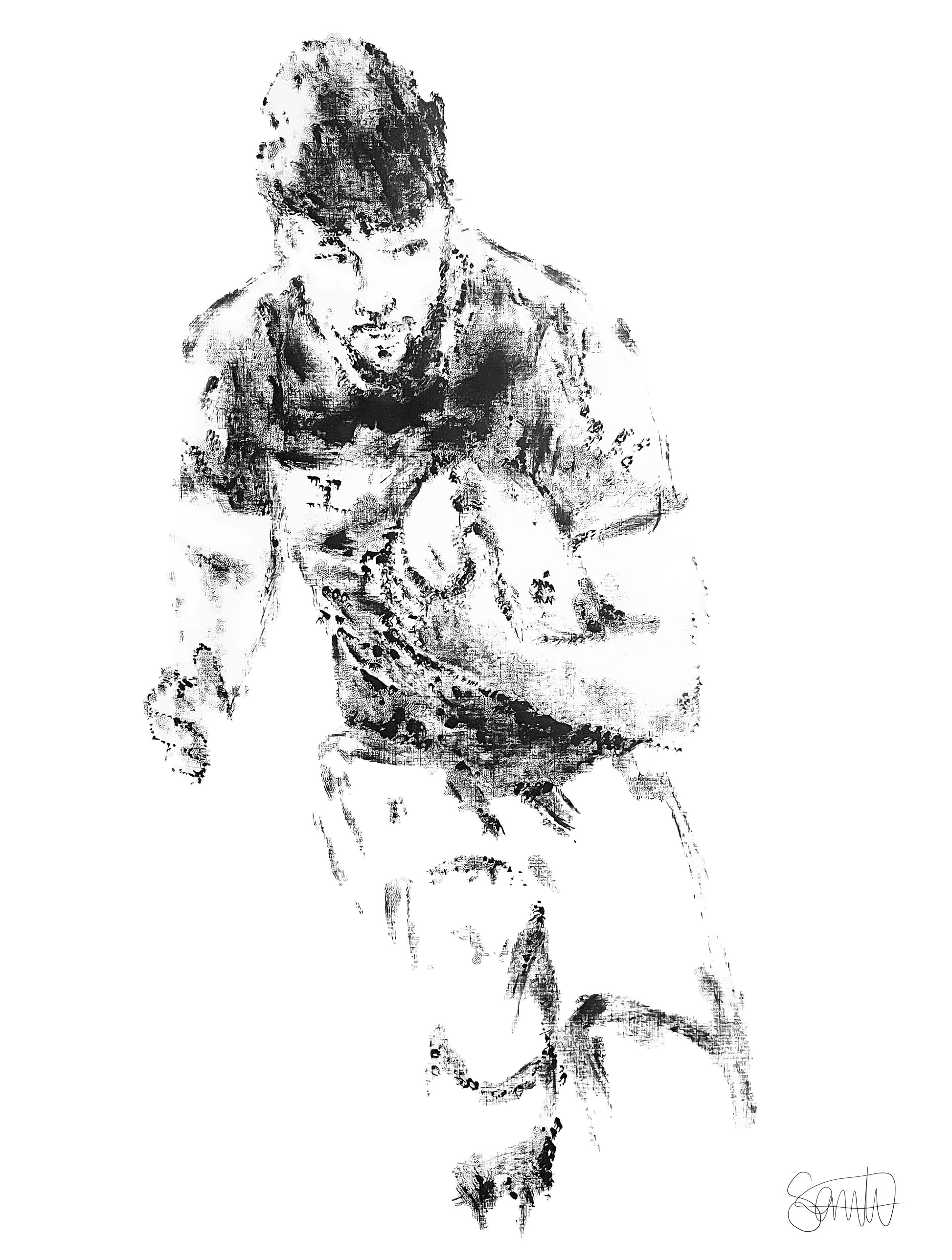 Print of Lucas Rumball painting made with a rugby ball.