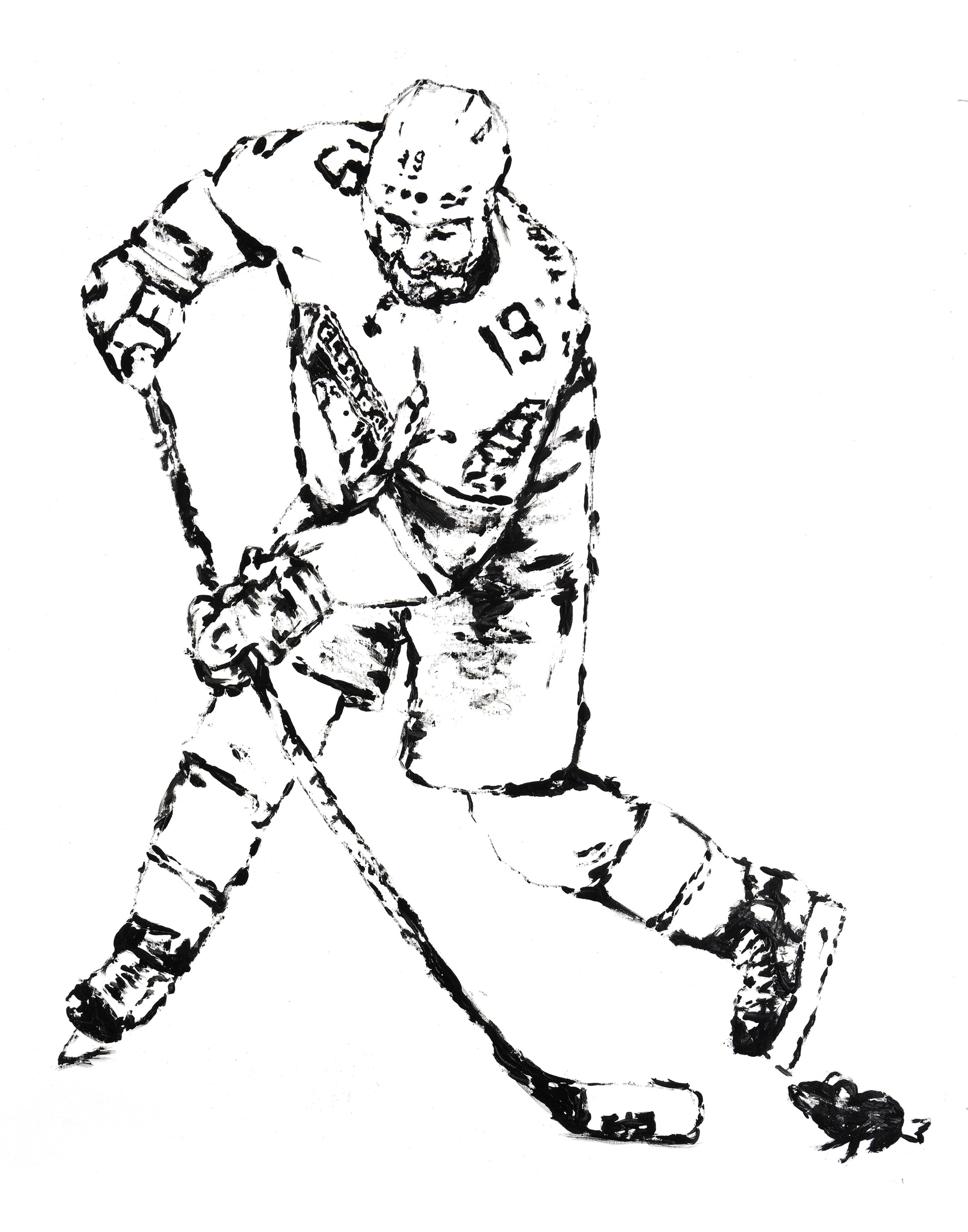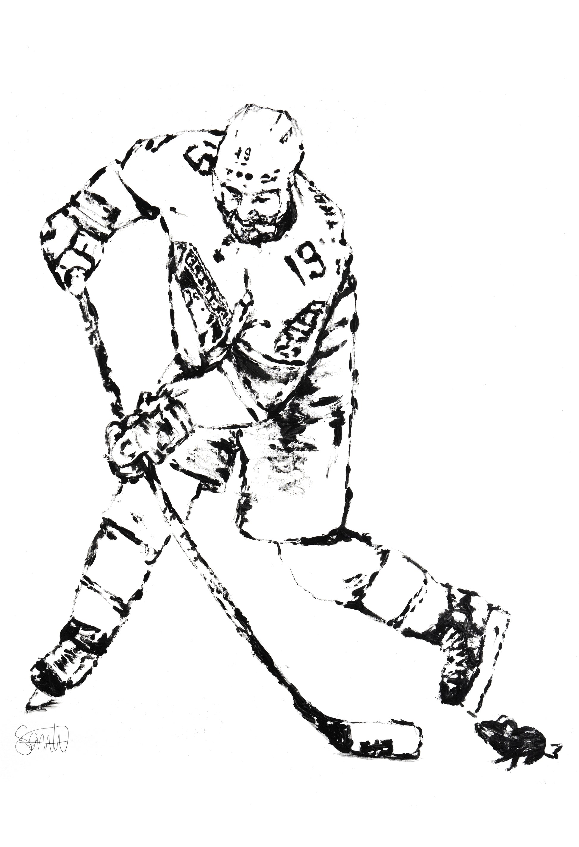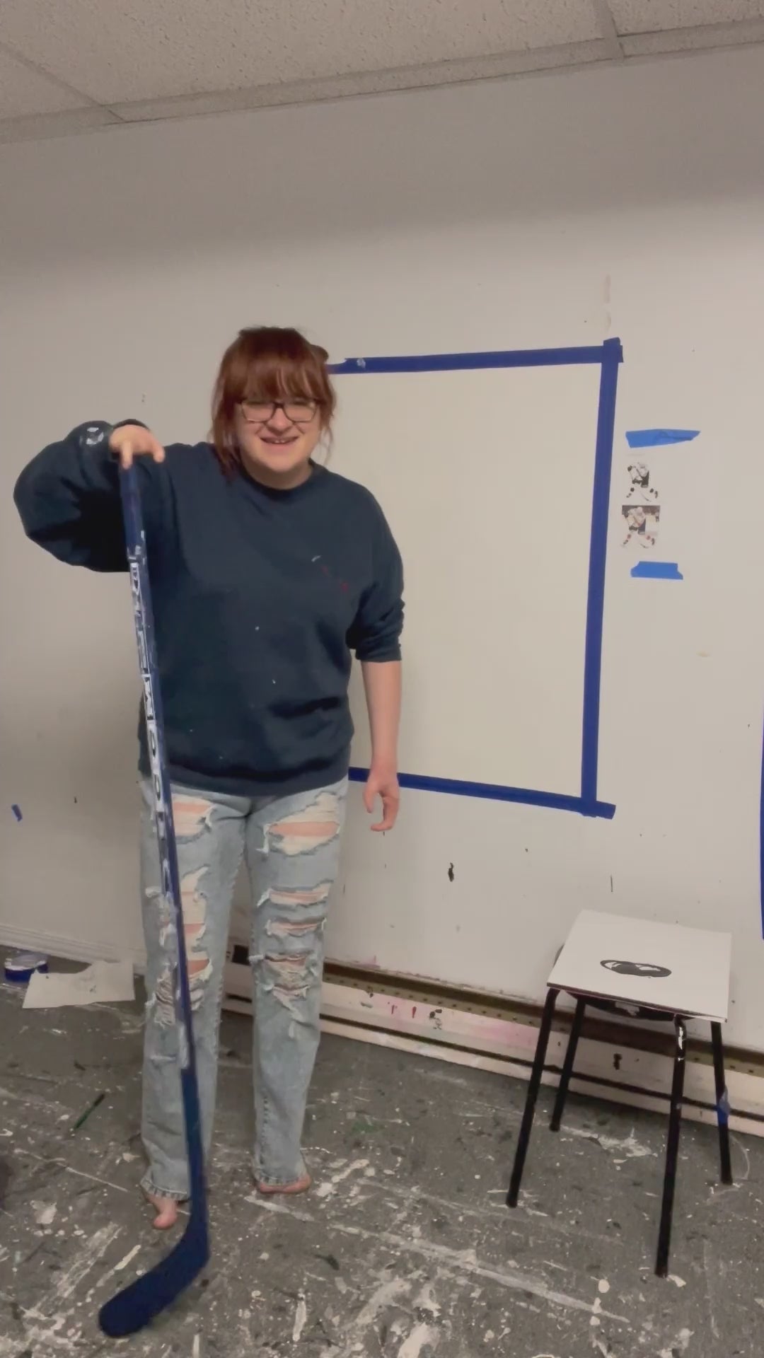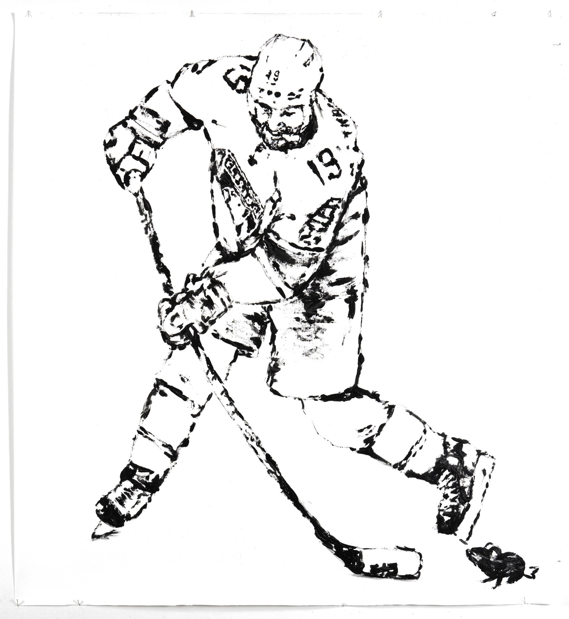 Print of acrylic painting on canva paper. The original painting was made using hockey stick and hockey puck as a paintbrush. A paintbrush was used to further define the marks made by the hockey equipment.