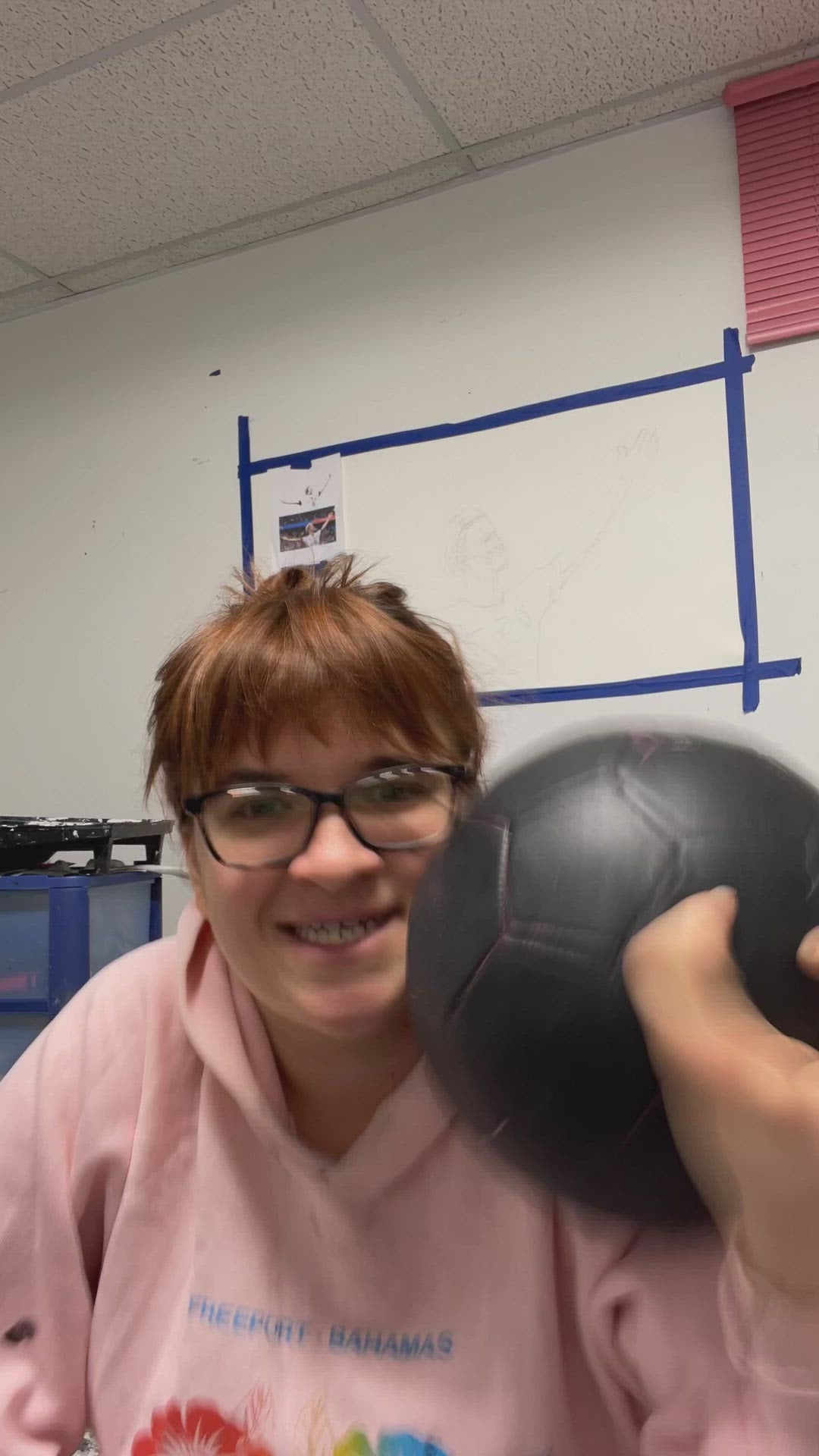 Print of painting made with a soccer ball as a paintbrush. A paintbrush was used to further define the marks made by the soccer ball.