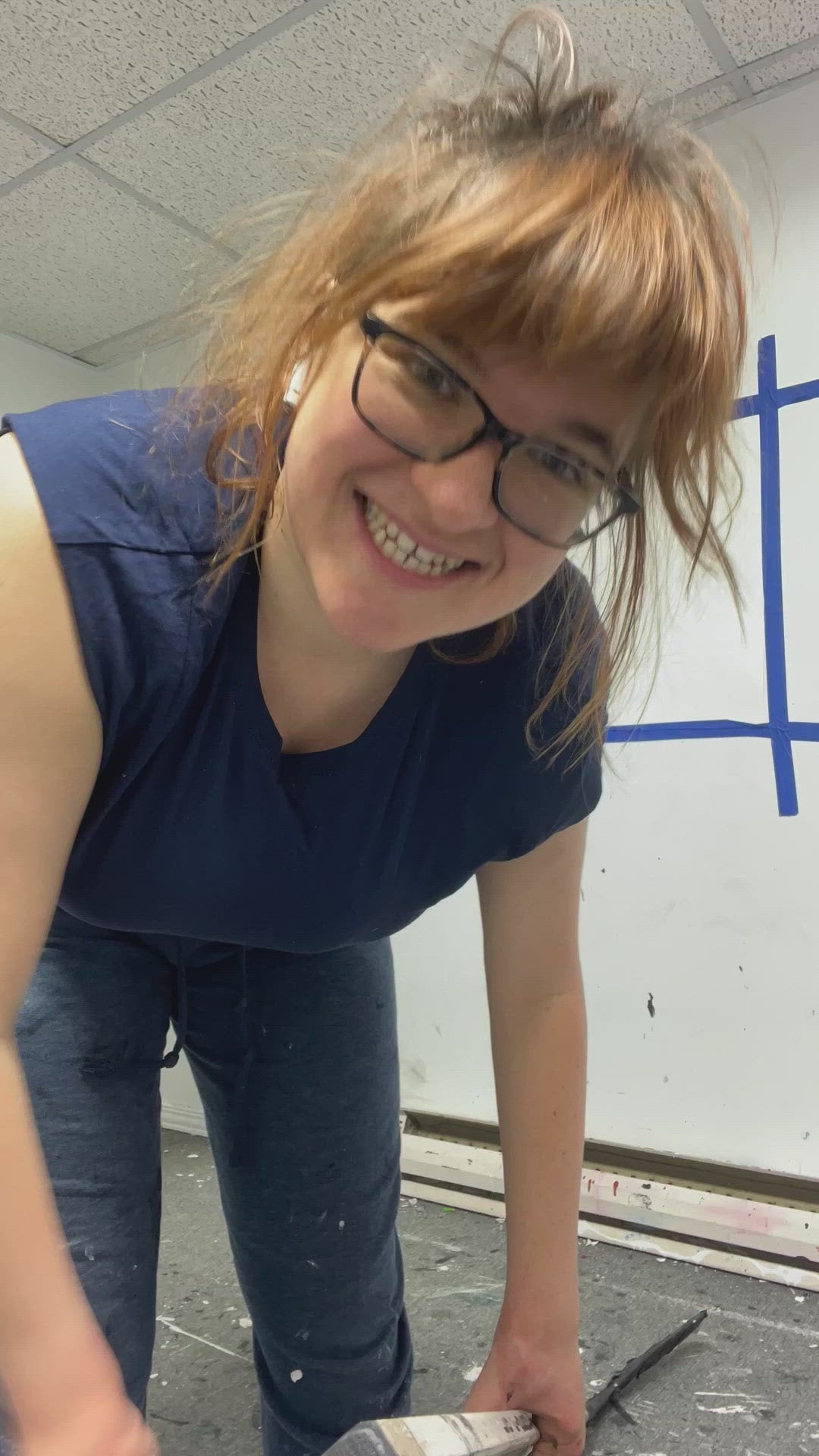 24" x 36". Painting made on Canson Canva paper with a hockey stick as a paintbrush, 2022. A paintbrush was used to further define the marks made by the hockey stick.