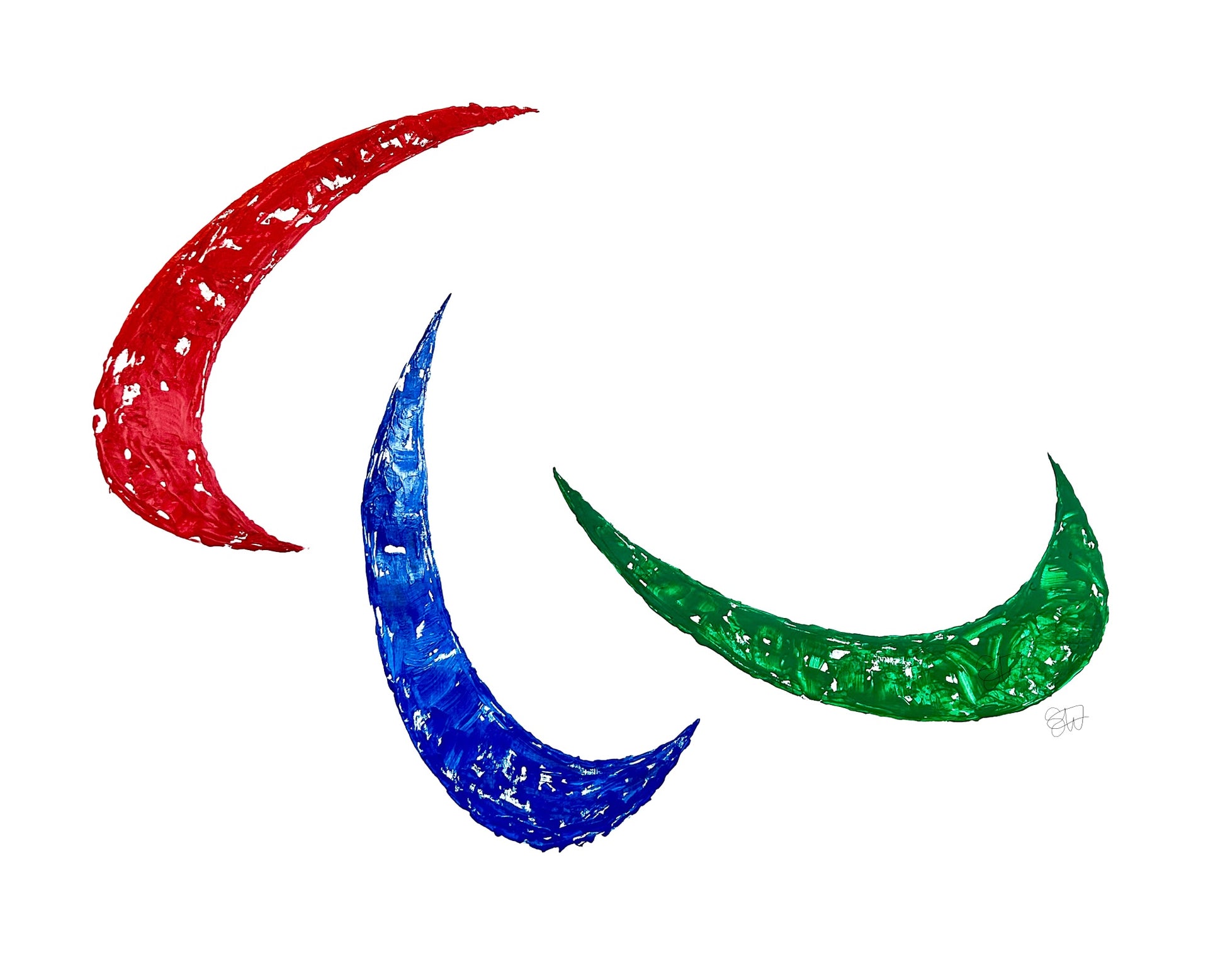 Fine Art Digital Pigment Print of painting of the Paralympic Winter Games logo with winter sports equipment as a paintbrush.