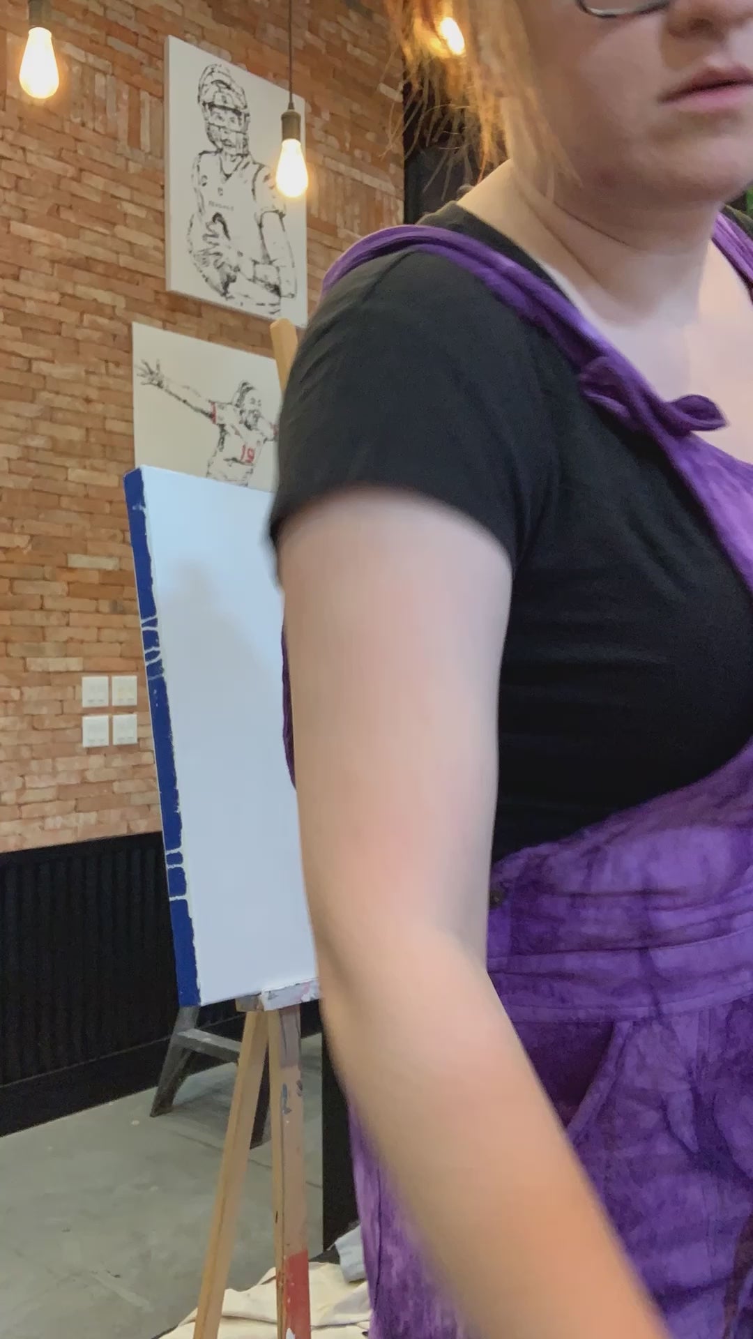 - 24" x 30". Painting made on canvas with a hockey puck and hockey stick as a paintbrush, 2023. A paintbrush was used to further the marks made by the hockey equipment.