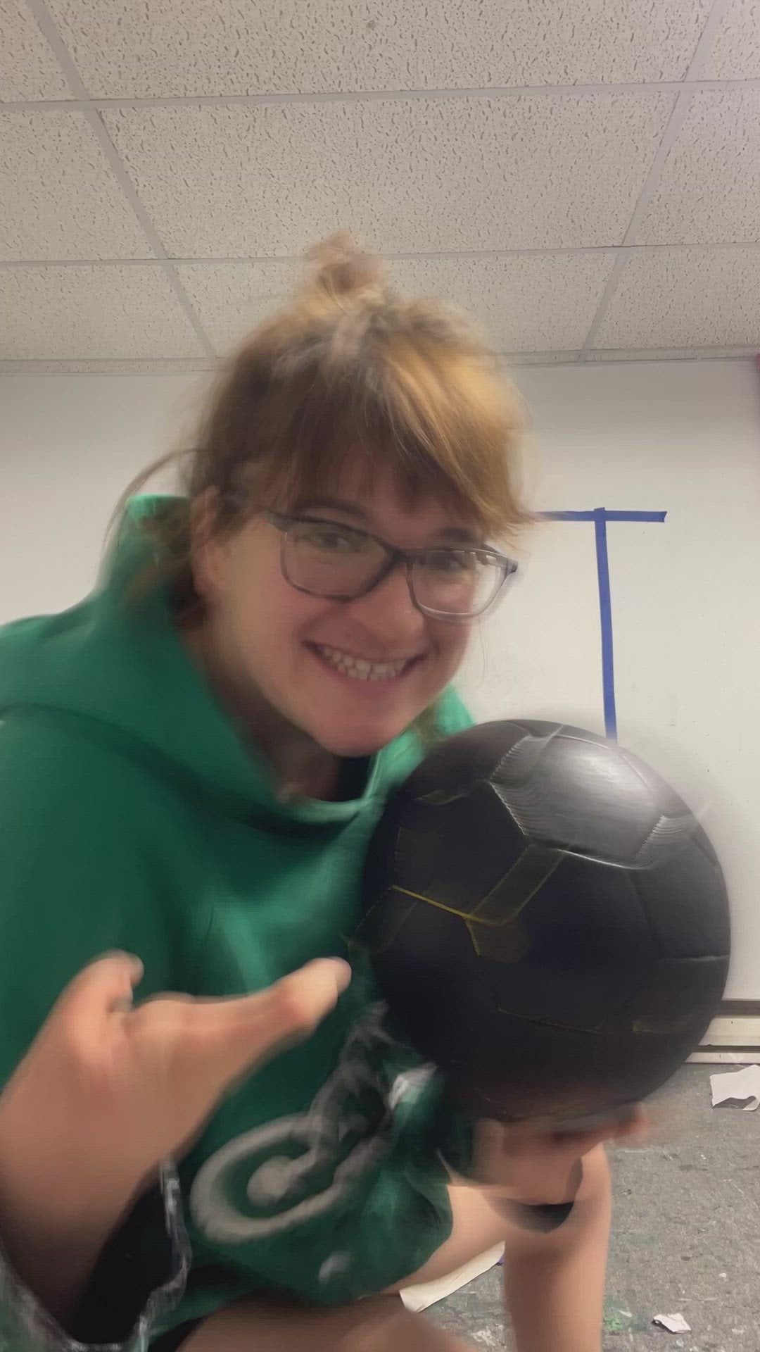 - 36" x 36", acrylic paint on on Canson Canva paper. Painting made with a soccer ball as a paintbrush, 2021. A paintbrush was used to further define the marks made by a