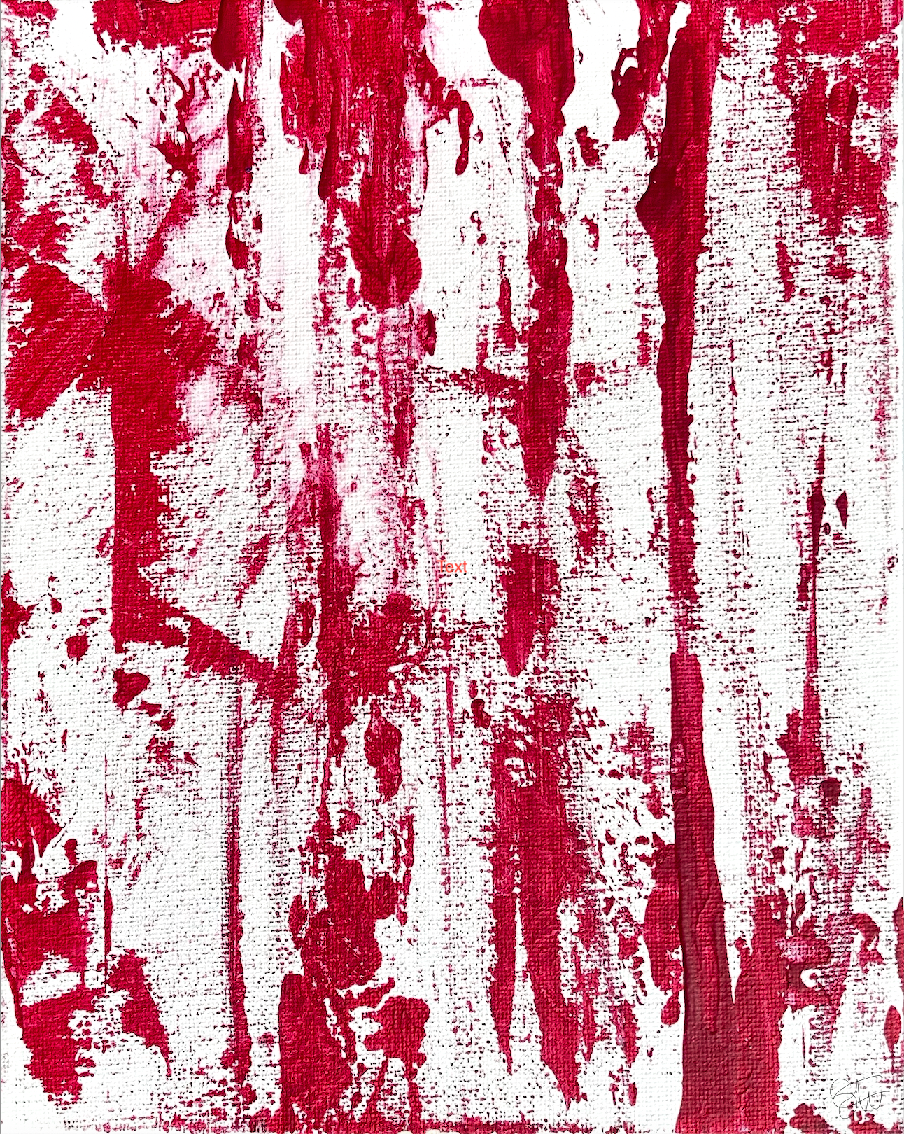 8" x 10"x .5" acrylic paint on canvas. This painting was made using hockey equipment as a paintbrush.