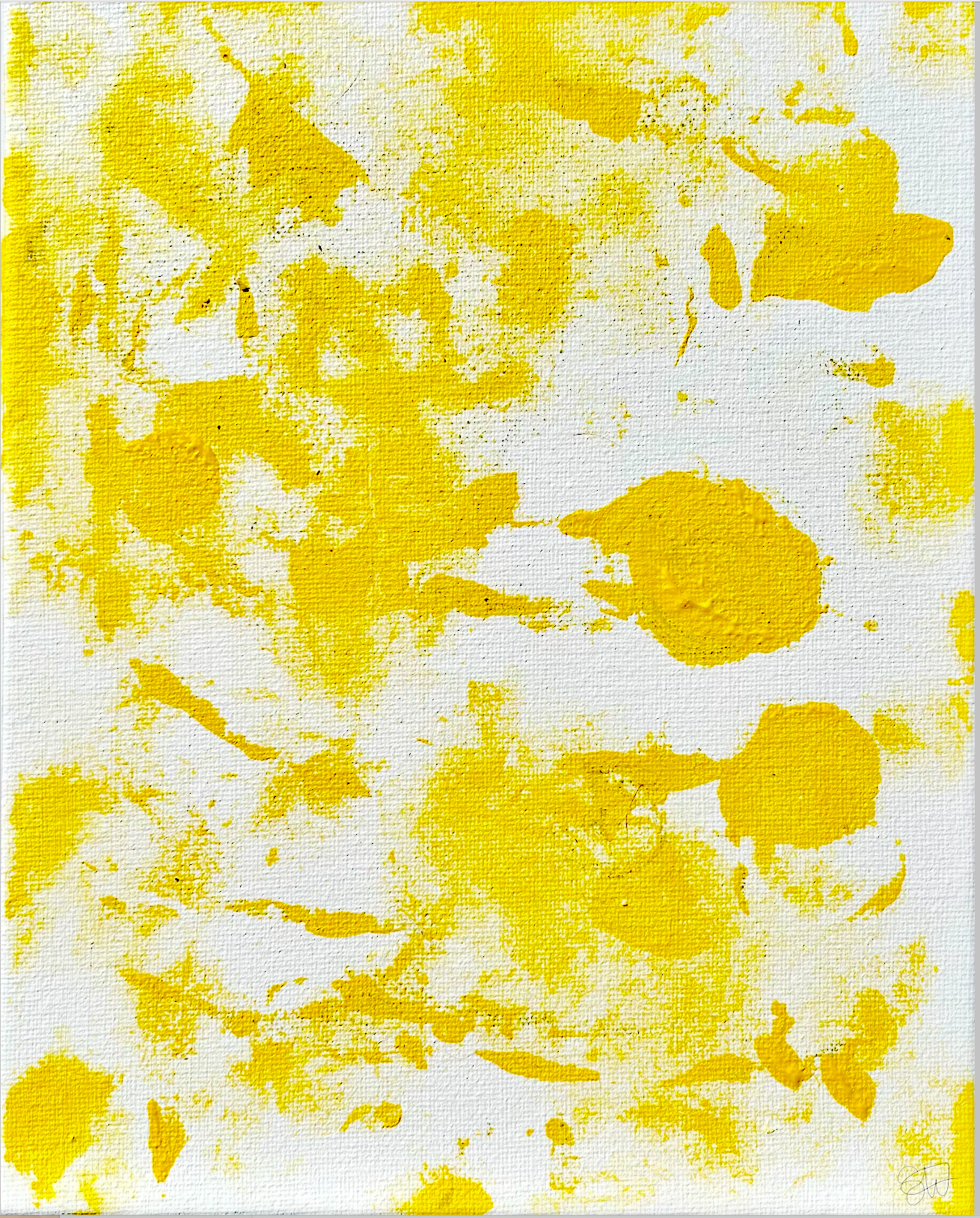 8" x 10"x .5" acrylic paint on canvas. This painting was made using tennis equipment as a paintbrush.