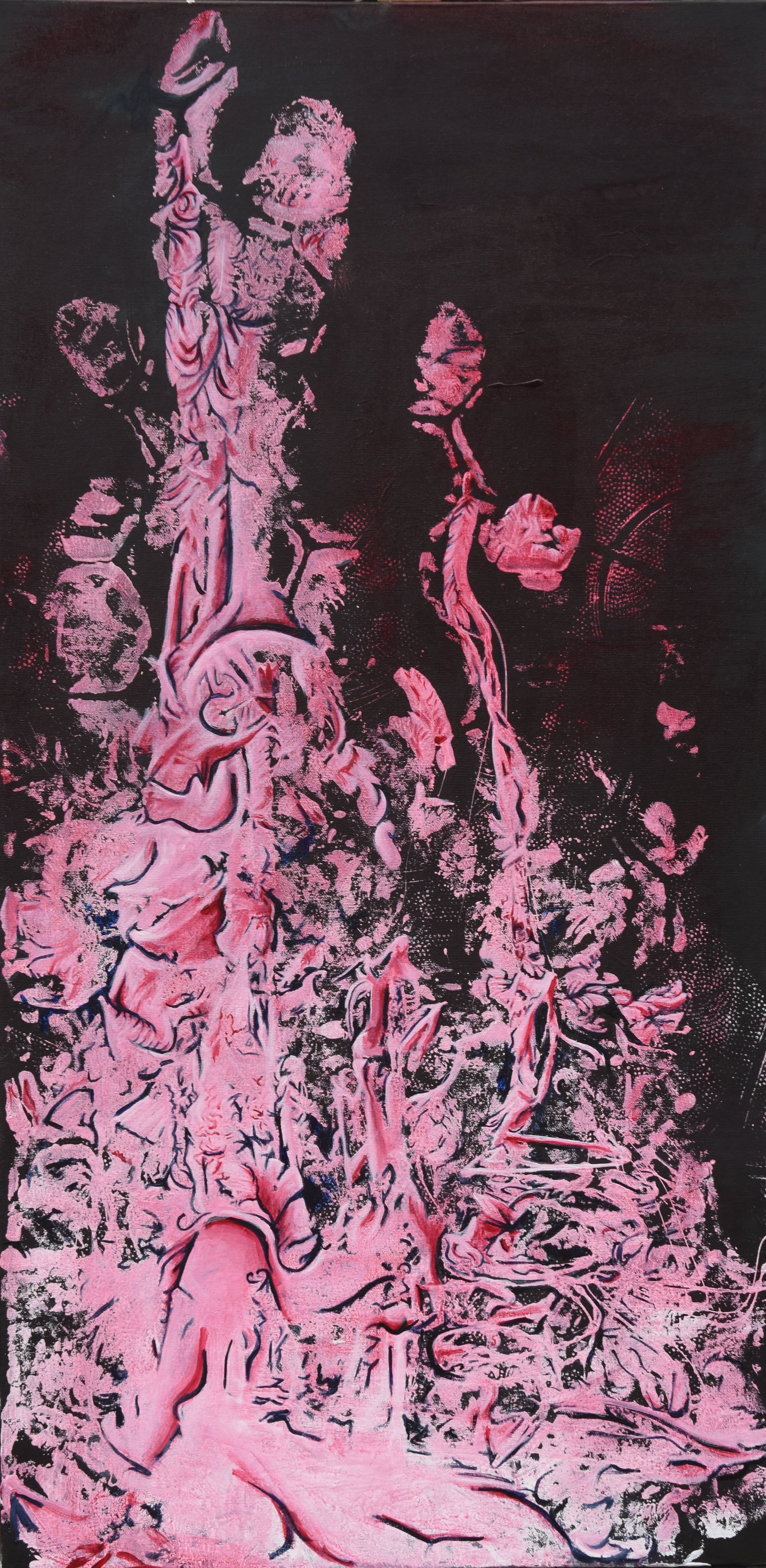 36” x 18” inches, wall paint and acrylic paint on canvas, 2021.