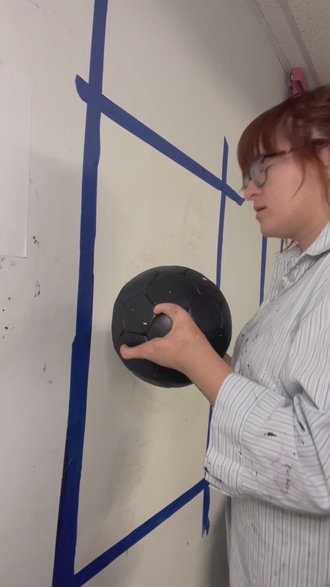 - 24" x 36", acrylic paint on Canva paper, 2022. Painting made with a soccer ball as a paintbrush. A paintbrush was use to further define the marks made by a soccer ball.