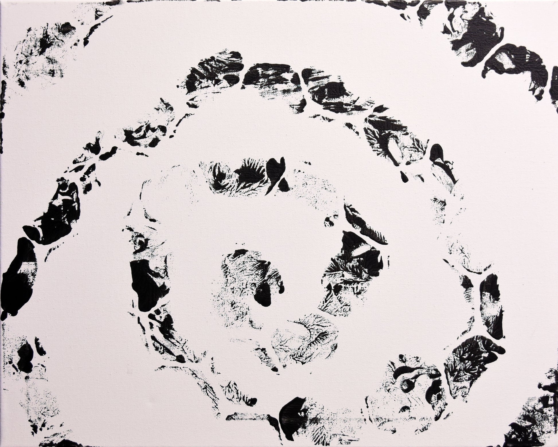 Cette peinture a été réalisée en faisant rouler un ballon de soccer sur la toile.