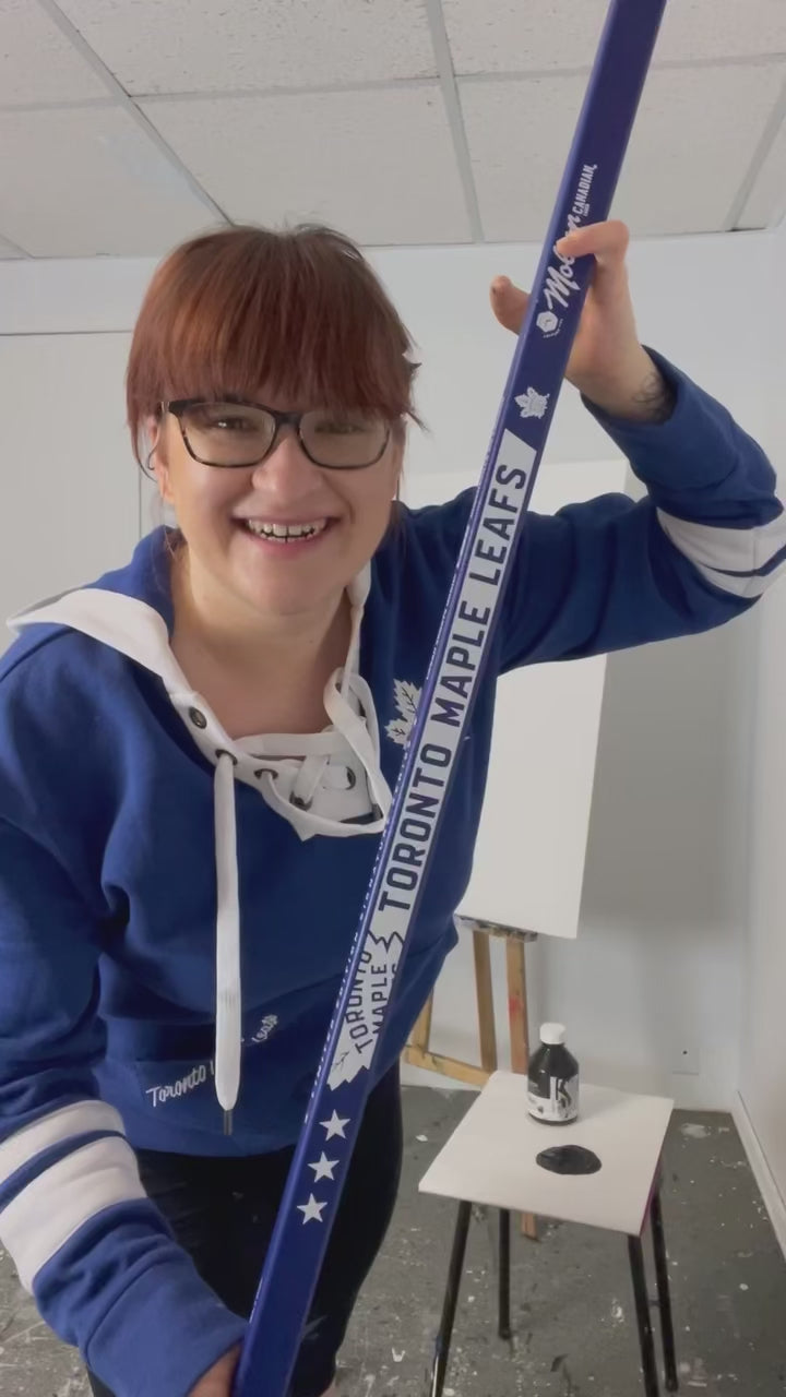 Fine Art Digital Pigment Print of painting Toronto Maple Leafs Logo with a hockey puck and stick as a paintbrush.